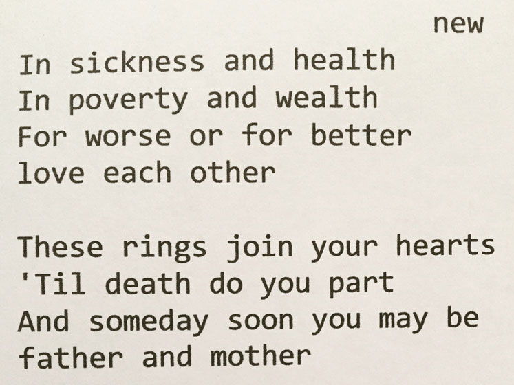 « Previous | Next » Rewritten lyrics for the bridge of “Wedding Day,” written May 27, 2016. Photo by Kharlie M.