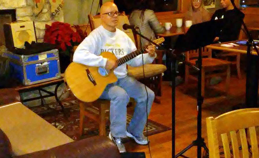 « Previous | Next » At Mocha Moment on January 4, 2017: Kharlie plays guitar for the first time. Guitar belongs to Jennifer Ruse, who also took the picture. Song was “Windows Have Pains” by Marty Robbins.